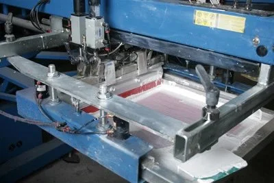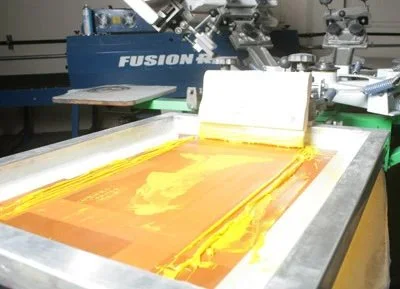Once your films are printed we are ready to move to the darkroom and expose your images to our screens. This is the most important step in the screen printing process. To expose your image to the screens we use a UV light emitting device called an exposure unit. Your film blocks out the light in your image area and exposes the screen in all of the areas where your image was not. Once exposed we are able to was out your image area and start setting up the press for production.